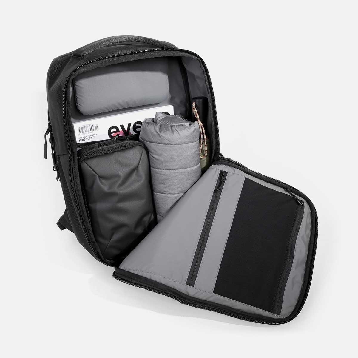 街歩き向けにデザインされた汎用性の 高いバックパックです。 レイフラットのメインコンパートメントには、毎日の必 需品をスマートに収納できます。 背面には快適性と優れたフィット感を実現する曲線の あるバックパネルを採用しています。