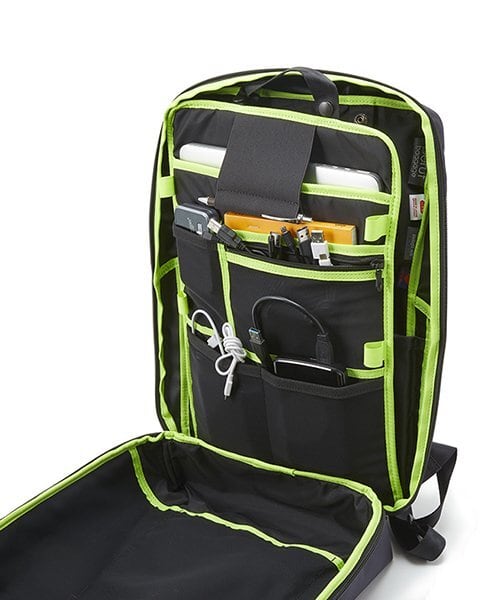 ・内蔵パネルには15インチまでのノートPC / タブレットデバイス / 各種ケーブル / モバイルバッテリー / ポケットWiFi/ メモパッド / ペン等が収納可能